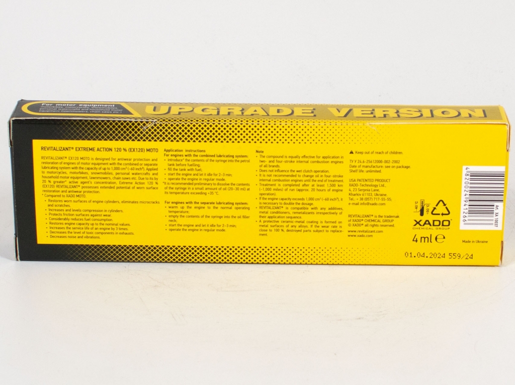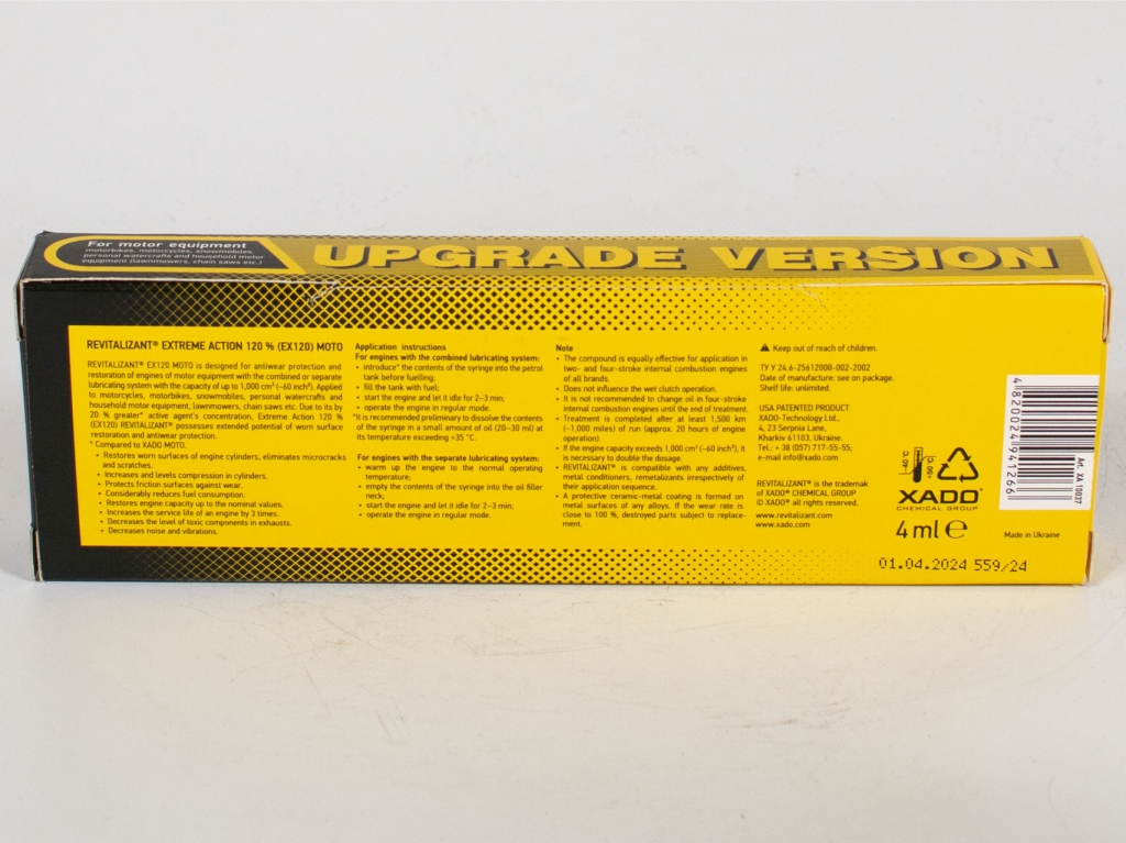 Ревитализант для мототехники Хадо EX120 Moto восстанавливает и защищает от износа двигатель объемом до 1000 см³ с раздельной или смешанной системой смазки.