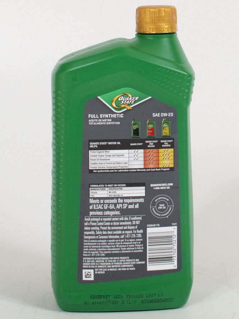 Главная / Моторные масла / Моторное масло QUAKER STATE Ultimate Durability Full Synthetic 0W-20, 0.946л