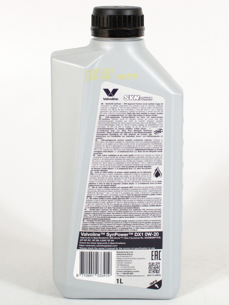Моторное масло Valvoline SYNPOWER DX1 0W-20, 1л