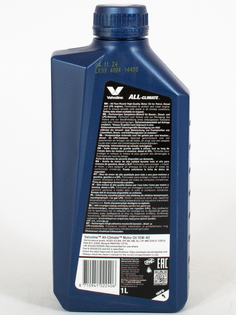 Моторное масло Valvoline All Climate 10W-40, 1л